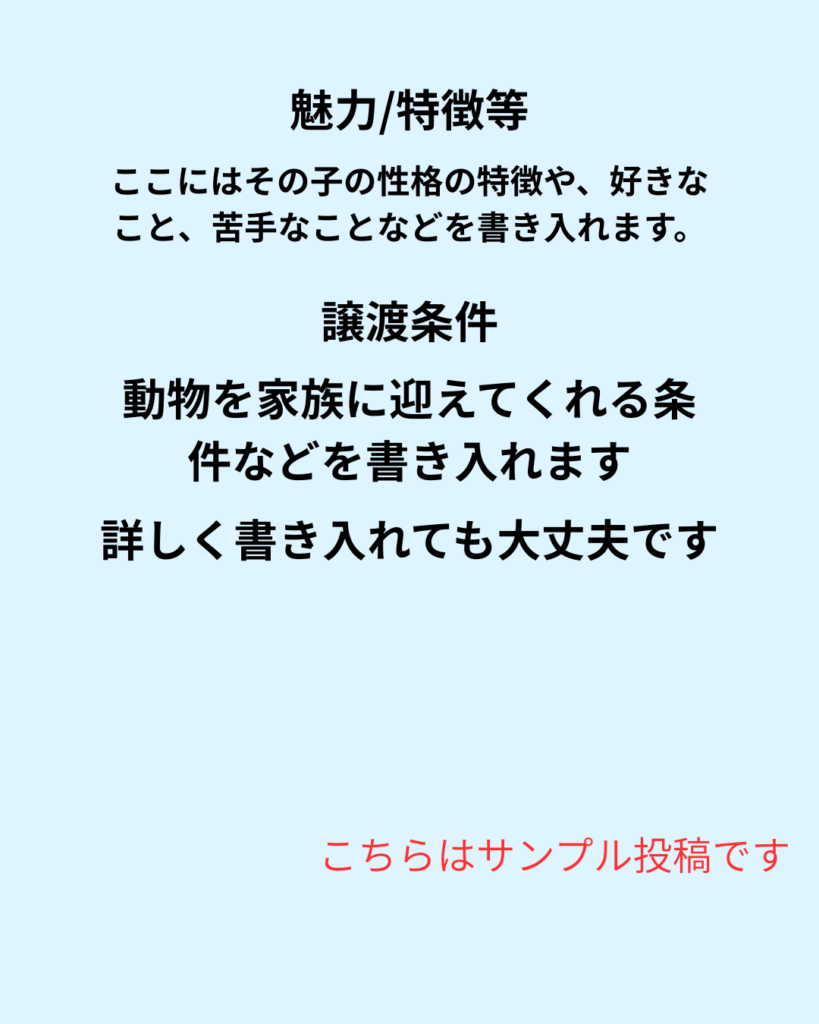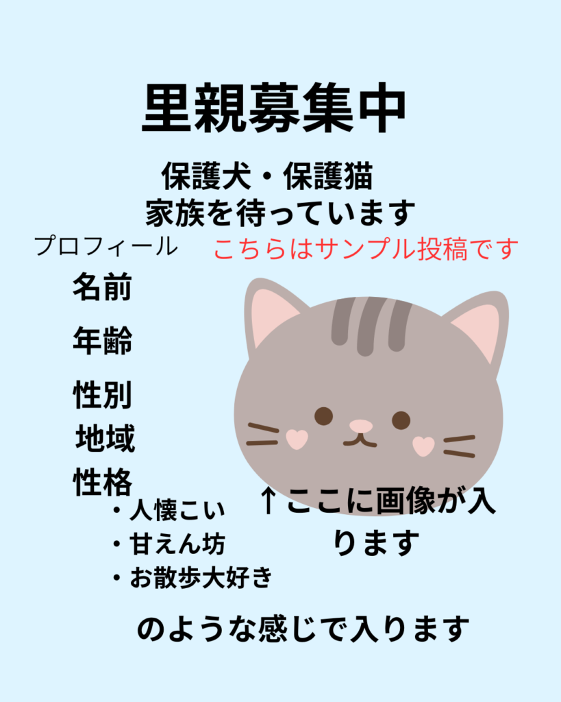 そこで今回は、里親募集投稿の作り方とサンプルをご紹介します。